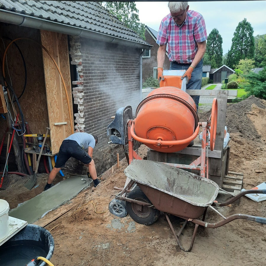 Gelijk met het slopen van de buitenmuur ook gelijk de vloer van de oude keuken verwijderd. Gelijk ook maar de oude fundering verwijderd, niet sterk genoeg voor het dragen van de vloer.