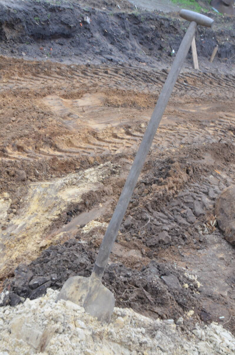 Stinus begint met goede zin, even alles op diepte uitgraven, zand even afvoeren en dan is dit ook weer geroggeld.