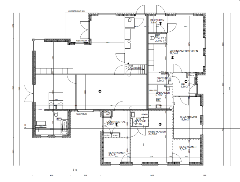 hierboven de tekening van het totaal, de verbouwing gaat in fases, het 'stookhok' wordt eerst afgebouwd. Ik besef nu ik dit schrijf dat we de ruimte nog steeds het stookhok noemen.