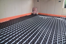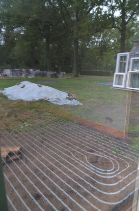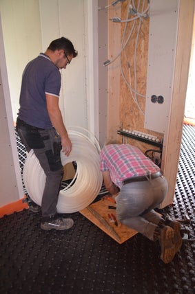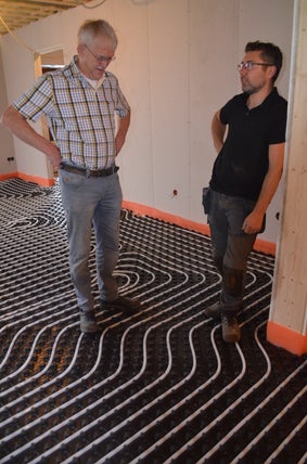 In twee dagen tijd hebben hebben Willem en Stinus de vloerverwarming gelegd. De buizen worden er ingelegd met behulp van een bijgeleverd legplan.