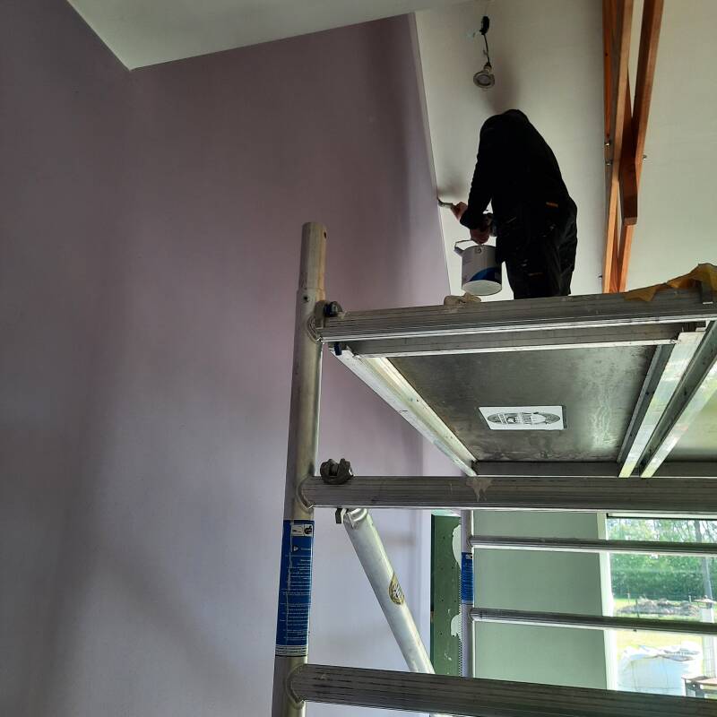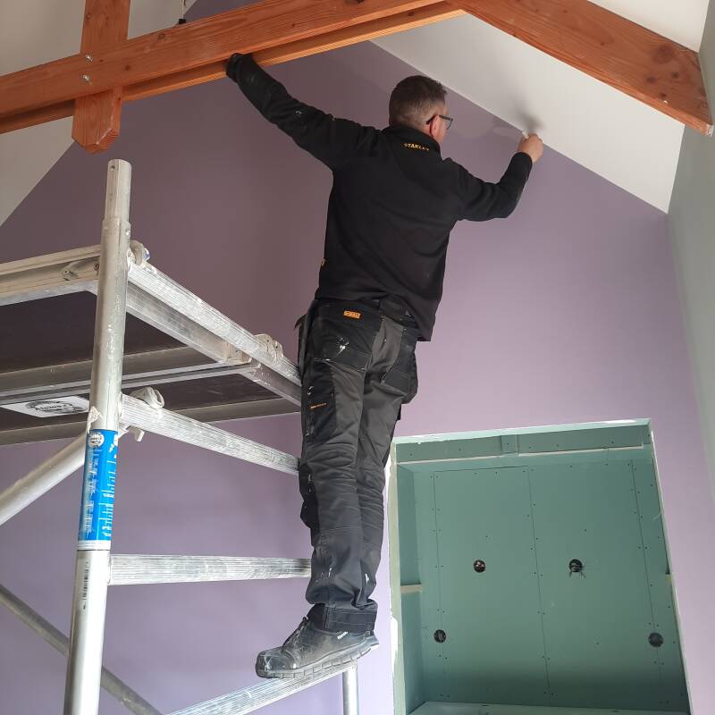 Het project even in de vertraging. De werkzaamheden liepen niet zo gesmeerd als je van een stukadoor verwacht. Geja zat met de blog ook even in de vertraging. Maar na een vertraging komt er altijd wel weer een versnelling! Op Goede Vrijdag stappen de schilders binnen met de benodigde materialen en vooral met goede zin!